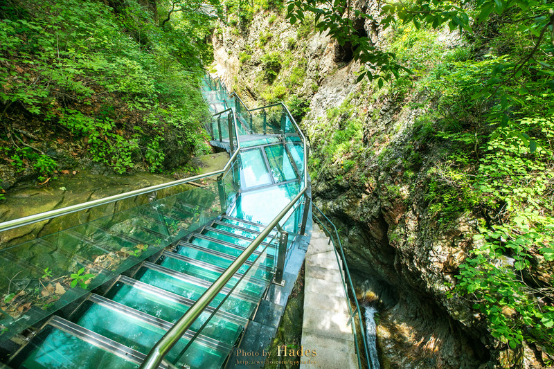 景区植被浓密,步道修建的较为舒缓,让爬山变得更为轻松。步道与溪流并行,身旁流水潺潺,头顶绿叶如盖。玻璃步道和穿越洞穴的石板路都是行程中有趣的亮点。