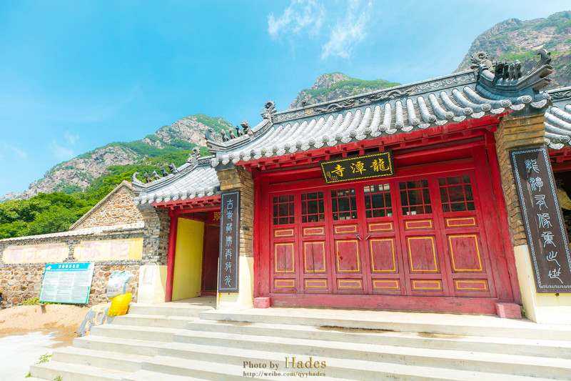 山腰之上,是龙潭古寺。寺庙始建于贞观十九年,也就是公元645年。原名凯捷寺,是唐太宗李世民亲征高句丽时,为纪念所幸山(赤山)大战胜利而敕命修建的。一般游客走到这里就可以折返了,如果有兴趣,并且体力充沛的话,可以继续冲顶。