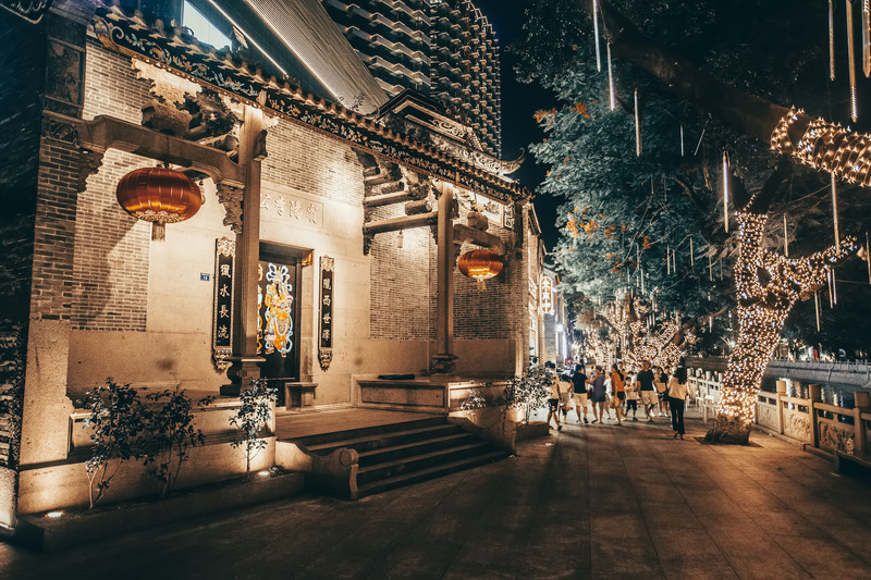 虽然都是岭南仿古建筑,但是屋瓦上依旧满是细节丰富的砖雕,与背后现代的钢结构楼宇形成鲜明对比。这里,你能看到多面广州的独特魅力。