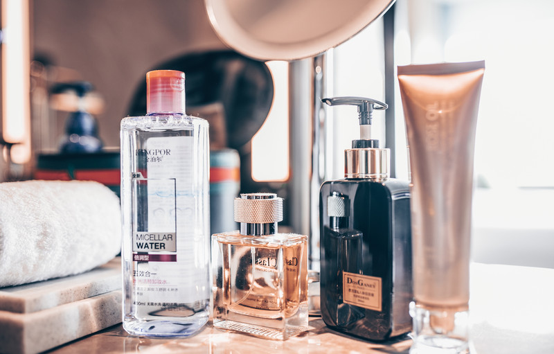 洗漱区除了常规洗护套装,还配置了正装护肤品,比如洁面、保湿凝露、护手霜、香水等,女孩子基本可以实现拎包入住了。