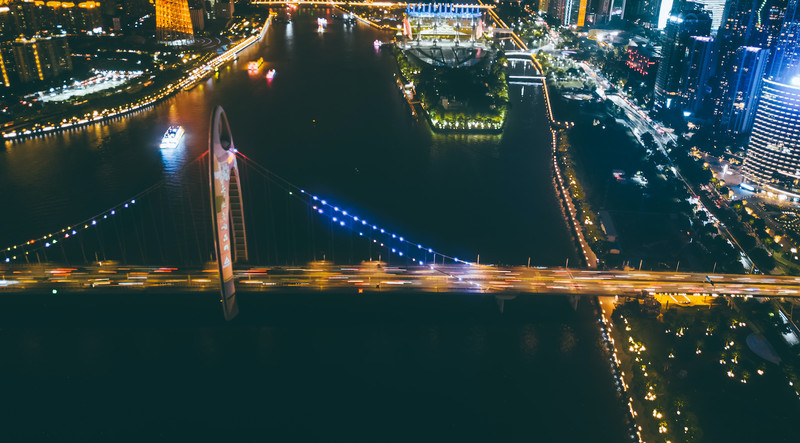 如果觉得天德街不够逛,穿条马路步行几分钟就能来到珠江边。猎德大桥下都是跳广场舞、唱歌,遛狗、夜跑的当地人;在这里欣赏桥另一头的小蛮腰,也比平时在景区欣赏更亲切动人一些。