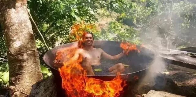 从远处看,坐在像锅里的人煮沸,但实际上,烧火的服务员会慢慢地烧水,会将温度保持在一个足够温暖,人不会烧伤。