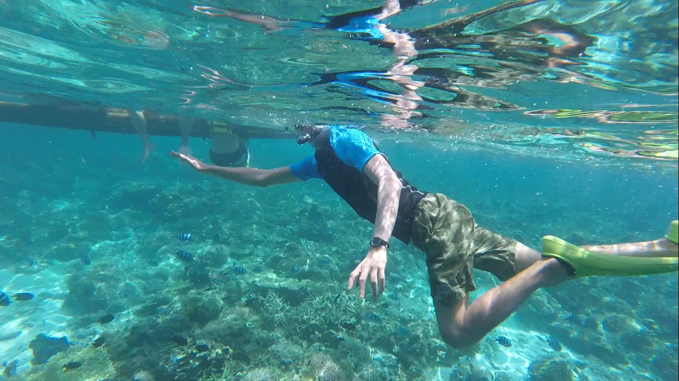 第一天参加了价值1500p的A线跳岛(脚蹼100p另算),去的点虽多,性价却很低,水不清、鱼不多、珊瑚不美,只有最后一个更换后的浮潜点稍微不错一些,整体而言仍然是失望的。
