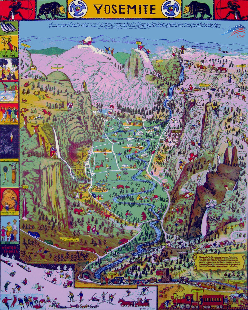 优胜美地国家公园主要有四大景区,中央的优胜美地谷最为著名,被称为“无与伦比的山谷”。