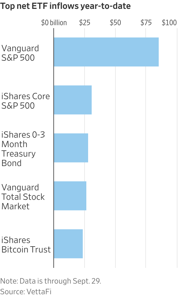 这两只指数基金与道富的同类产品,今年截至9月下旬合计净流入近1400亿美元,几乎相当于每个交易日10亿美元。