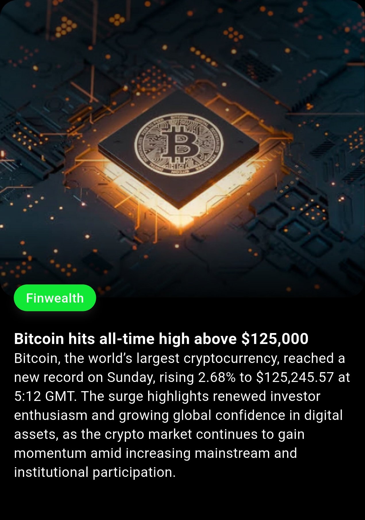 全球市值最高的加密货币比特币周日创下历史新高,截至格林威治时间早上5点12分,比特币上涨约2.7%,报125,245.57美元。