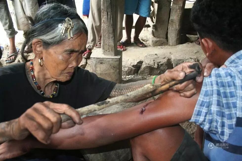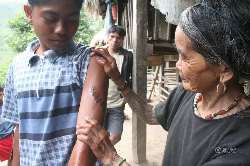 卡林加部落(Kalinga)的Buscalan村位于菲律宾科迪勒拉山脉北部,仿佛永远被雾气笼罩着。部落中许多纹身的勇士都已去世,但还能见到不少纹身的年迈女人。她们的纹身都出自这里的最后一位纹身师,89岁的老太太Whang-Od之手。她的Batok,也就是纹身手艺,是从父亲那儿学来的。
