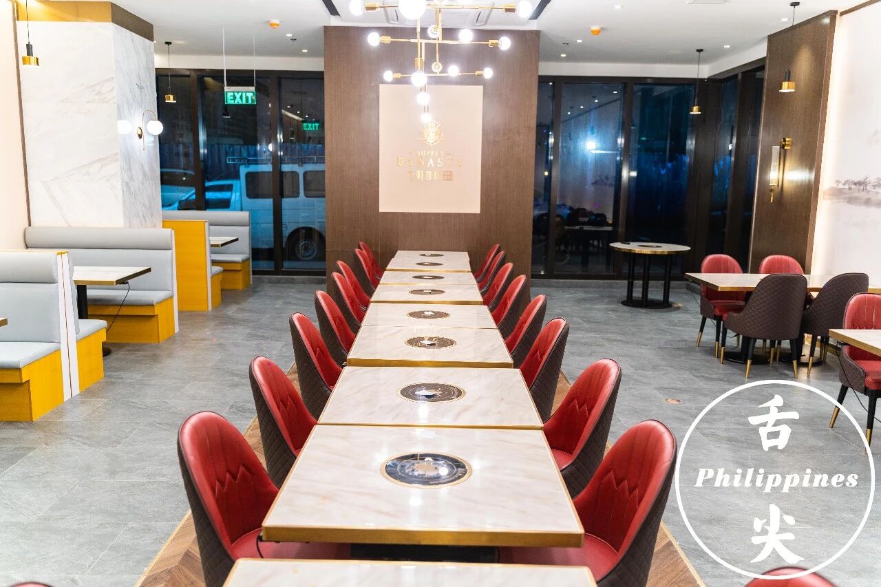 左边是就餐区,拥有不同大小的圆桌+方桌