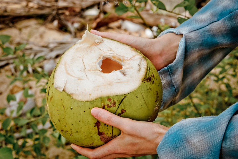 之后就可以喝到鲜美甘甜的椰子啦,在椰子树下摘椰子喝椰子,也算是人生第一次,这么“野”的路子,似乎喝起来味道也更加难忘了。
