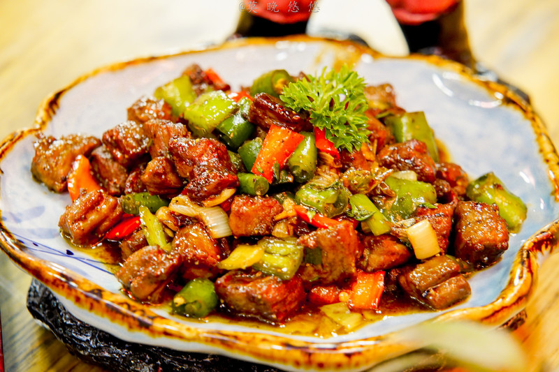 五指山小黄牛,用牛肉佐螺丝椒炒到火候偏干煸,但是入口肉质还是很嫩,且十分入味,非常开胃。