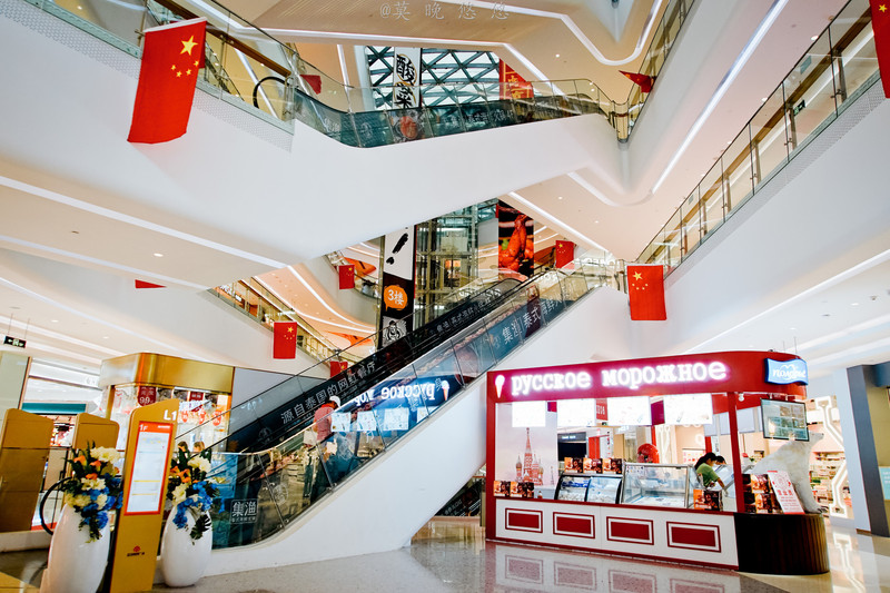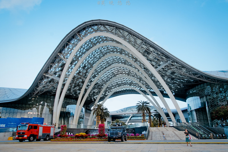 下车之后,首先就被它壮观的外观给吸引了,建筑整体采用连续空间曲面钢结构,如同一朵娇艳的“海棠花”盛开在蔚蓝海岸线。免税城建筑面积12万平方米,分为A、B两栋楼,引进了近300个国际知名品牌。
