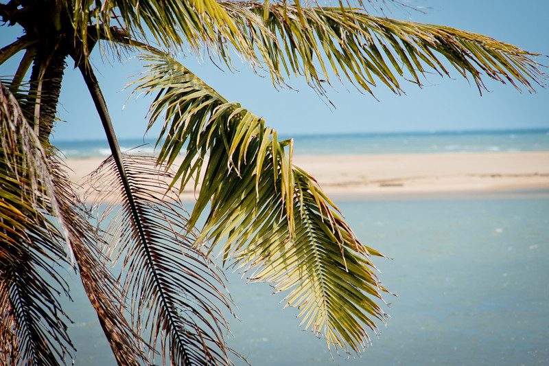 漫过及膝的海水,走到这颗摇摇欲坠的椰子树边上,迎着风眺望对岸的的风光~