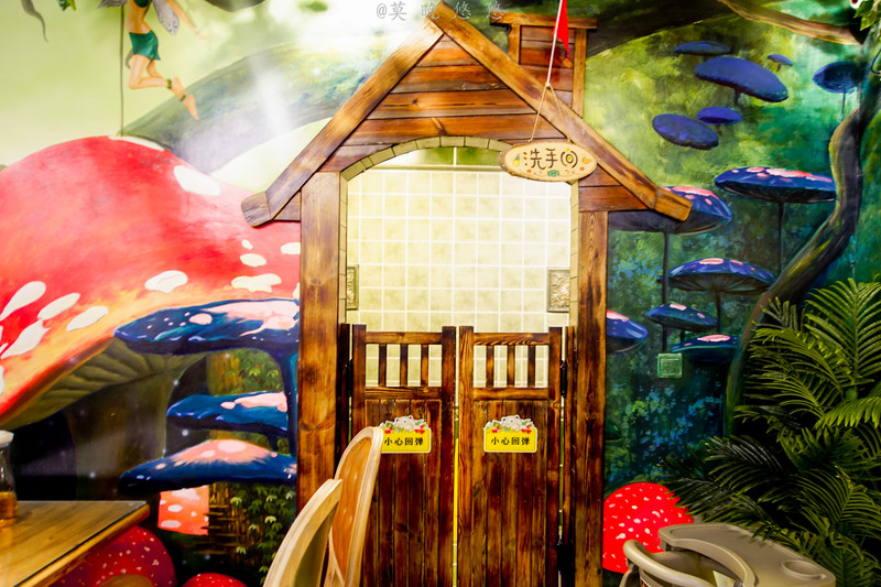 里面延续了外面的童话风格,就像走进了魔法森林一样,大树,蘑菇屋,小猴子,小松鼠,全部都很梦幻,内心也一下子明亮起来,变得更加柔软了。